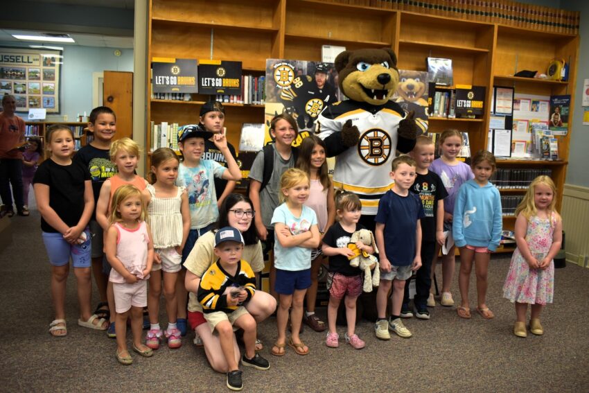 RUSSELL — The Russell Public Library had a special visitor on July 22. “Blades,” the Boston Bruins’ Mascot and friends from the Mass. Board of Library Commissioners stopped by for their summer reading promotion, “When you read, you score!”